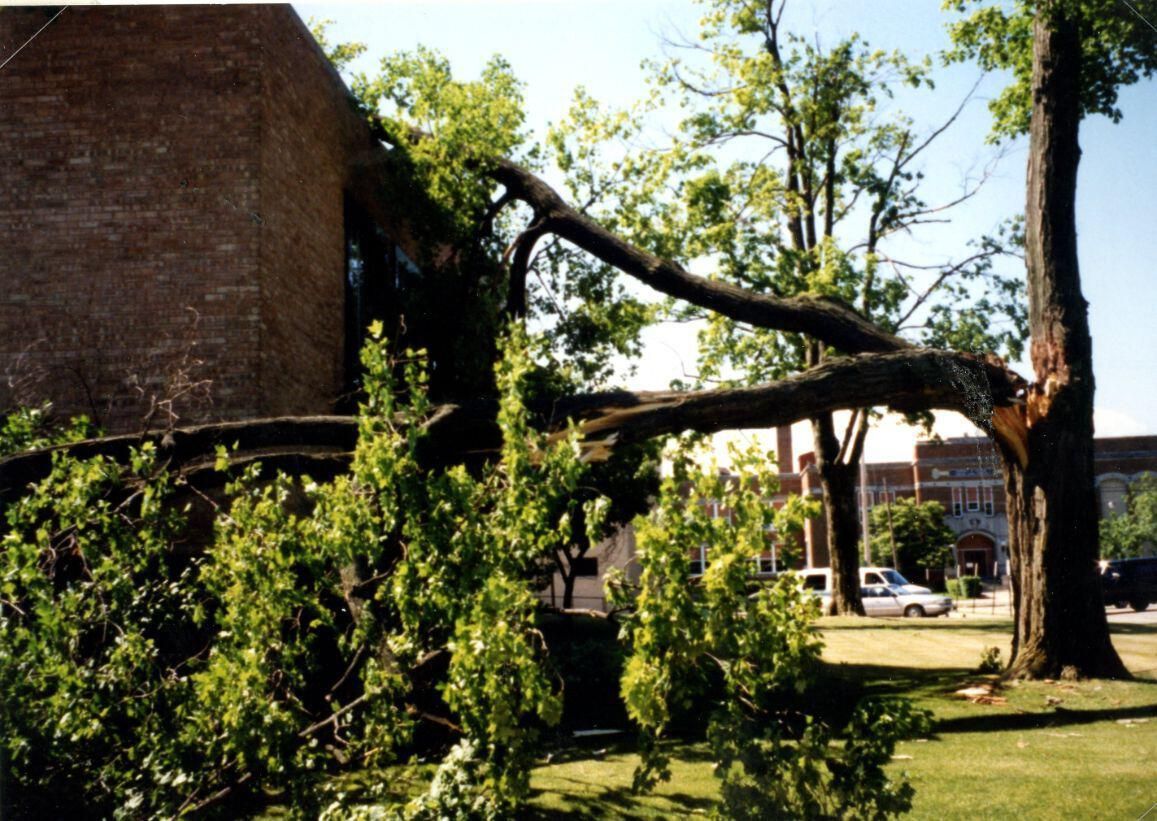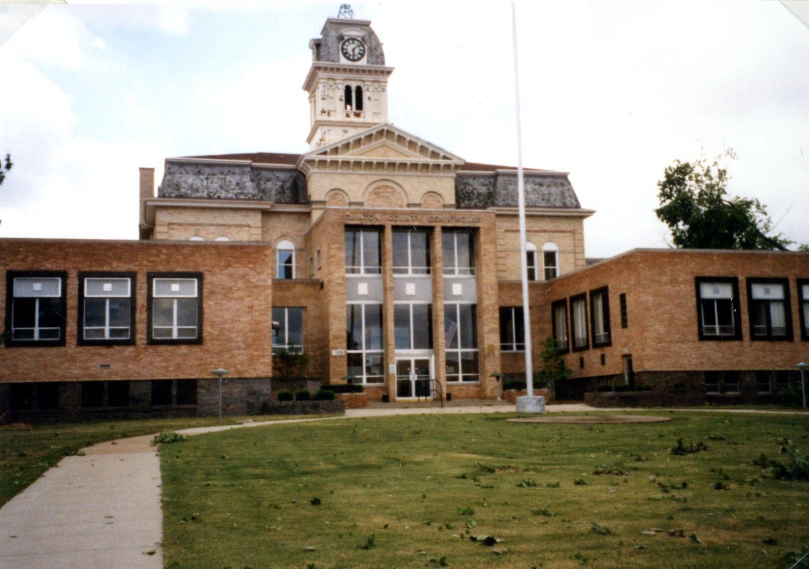 Clinton County Courthouse, St. Johns, May 1998. Also tree down at courthouse in May 1998.