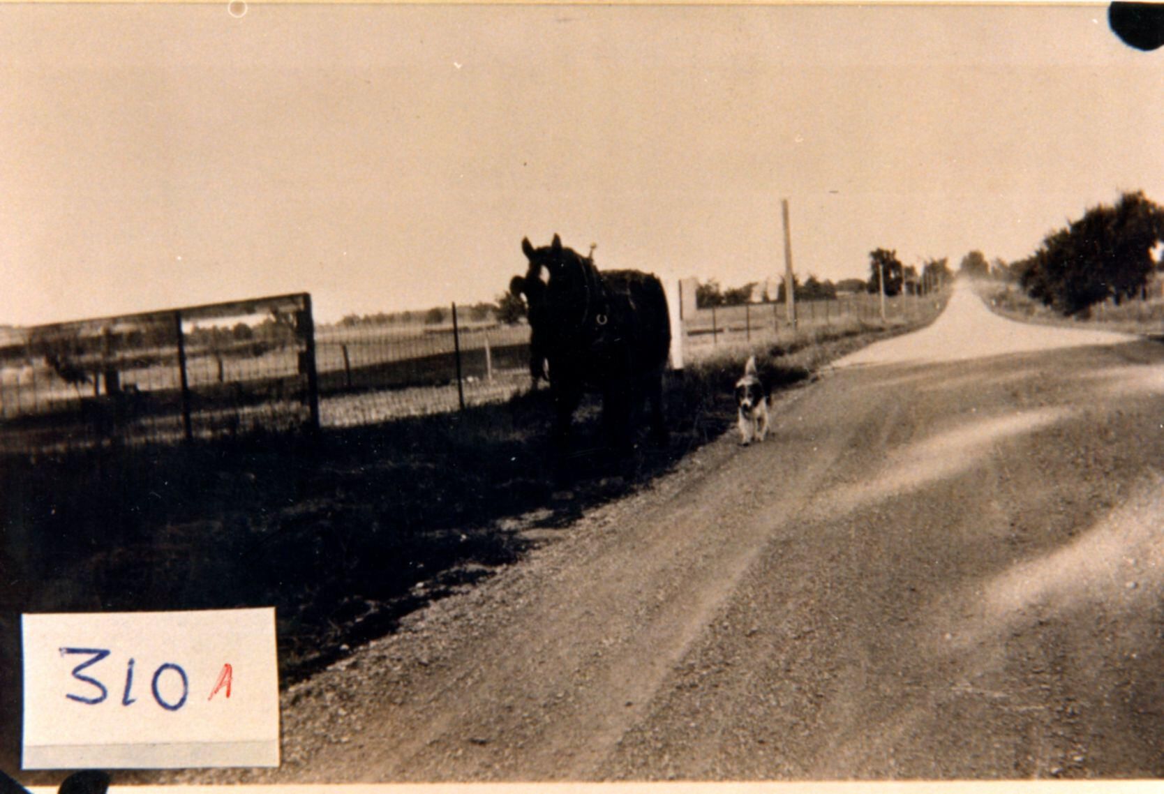 Cressman Farm c1940. 310A is dog bringing horse home. 310B is cultivating with John Deere. 310C is John Deere. copies