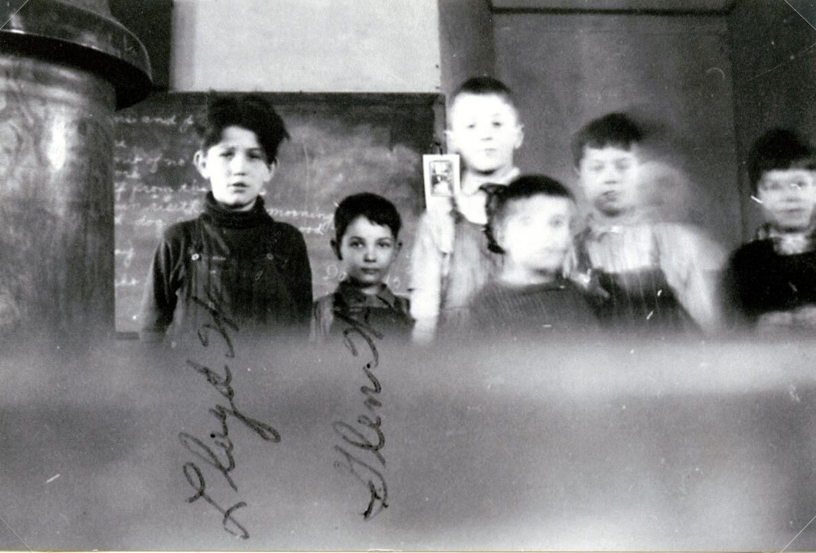 Watson school, Duplain Township. Q74 shows Lloyd Walker (died March 3, 1922, age 9) and Glenn Walker. Q75 shows Lloyd and Glenn Walker and possibly Earl Walker.