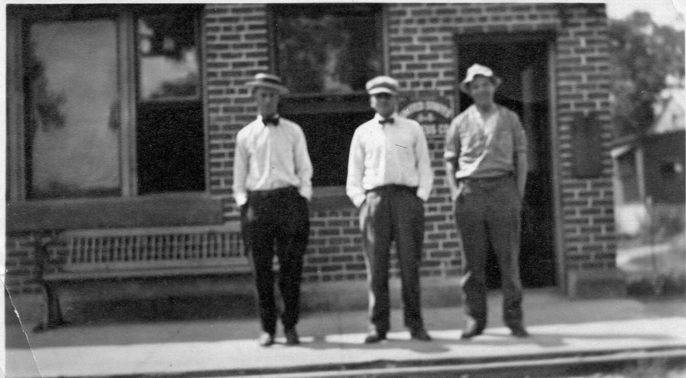 Arlin Gross, Jule Fox, Ray Derham in front of Interurban depot