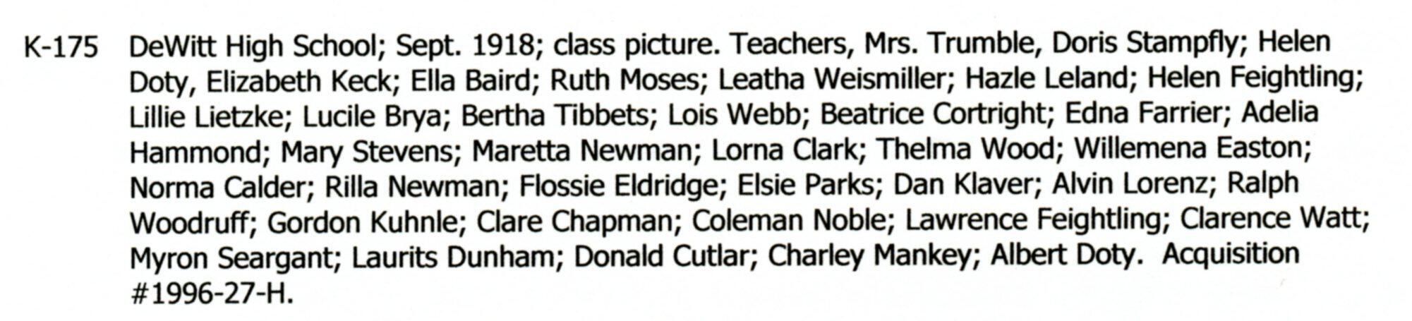 DeWitt High School, September 1918.