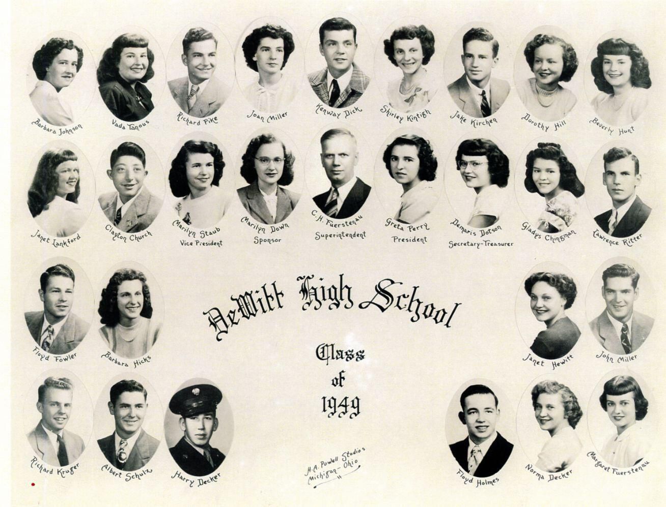 DeWitt High School class of 1949. photocopy.