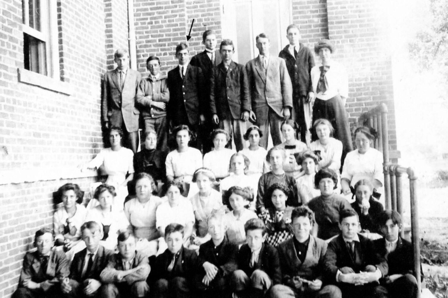 DeWitt high school students c1912. Arrow points to Myron Howe. copy