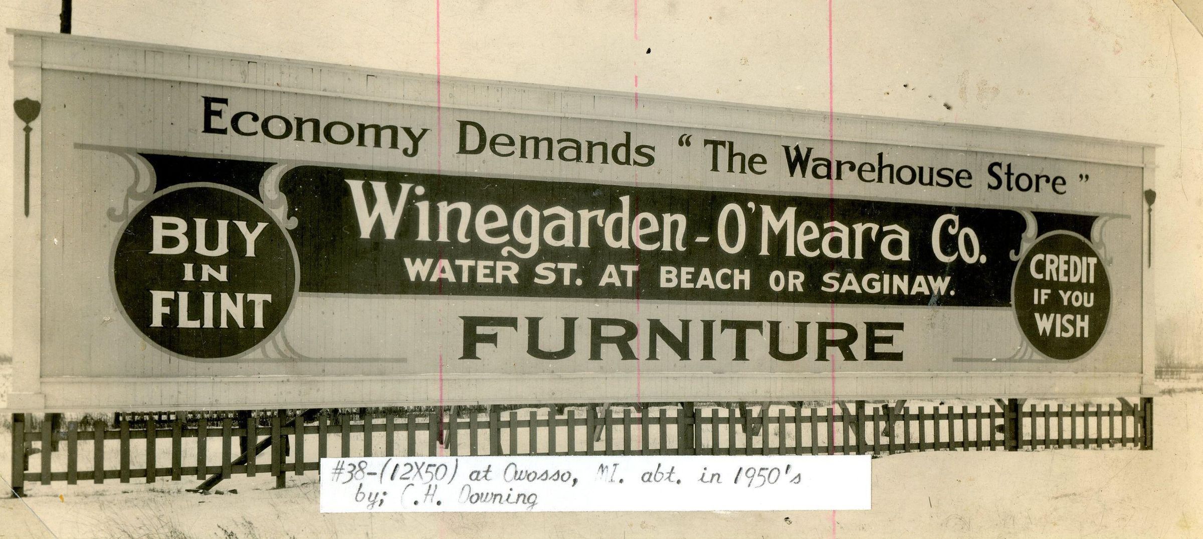 Winegarden-O'Meara Co. sign by Charles H. Downing at Owosso.
