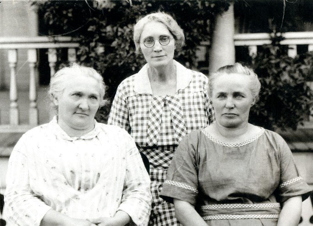 Elizabeth (Dreps) Redoutey, Helena (Dreps) Fitzgerald, and Mary (Dreps) Lucas. Triplets at age 50, June 23, 1923. (photocopy)