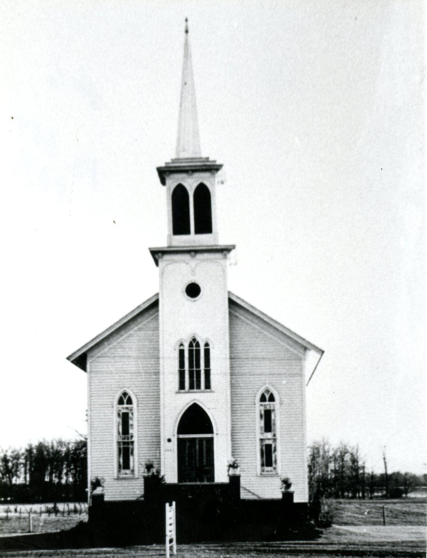 Old Duplain Church of Christ. Copy of photo used in Clinton County History (1980) page 559. Original owned by Arlene Holden. Another copy is PI212-94.