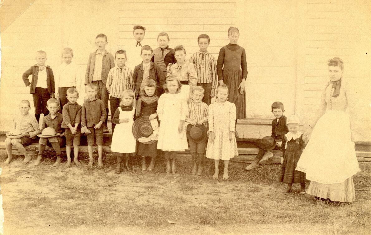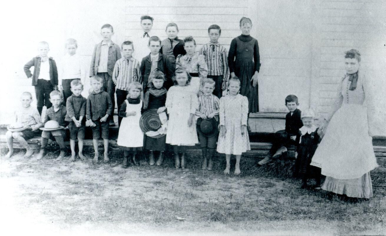 Eaegle/Eagle School of Greenbush Township c1890. (back) Cousin of Dell Ostroth visiting, Asa Gilson, Delbert Ostroth, Burton Eaegle, Bertha Henry, Sayers Hulse, Belle Eaegle, Vina Howes, Henry Gilson, Grace (Hawes) Wagner, (front) Artie Henry, Victor Richards, M. I. Russell, Guerd Pershing, Carl Eaegle, Flora Nye (teacher)