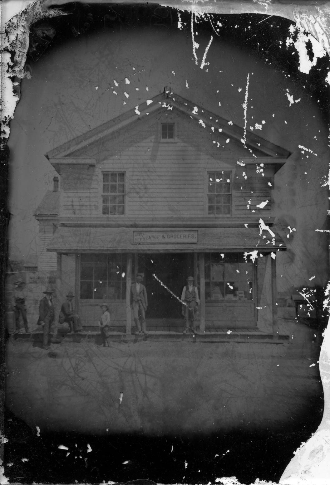 Early DeWitt store on the NW corner of Main and Bridge streets built c1845. Faye Hanson said this was a gift of Mable (Brinkerhoff) Lee, however, Ken Coin contact her and she denied knowing anything about this photo.