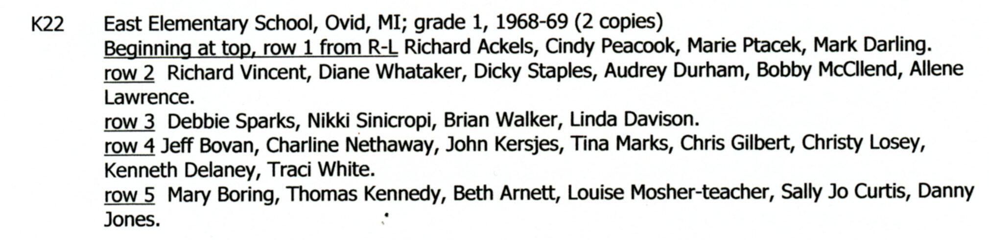 East Elementary grade 1, Ovid, Michigan, 1968-9. Louise Mosher (teacher).