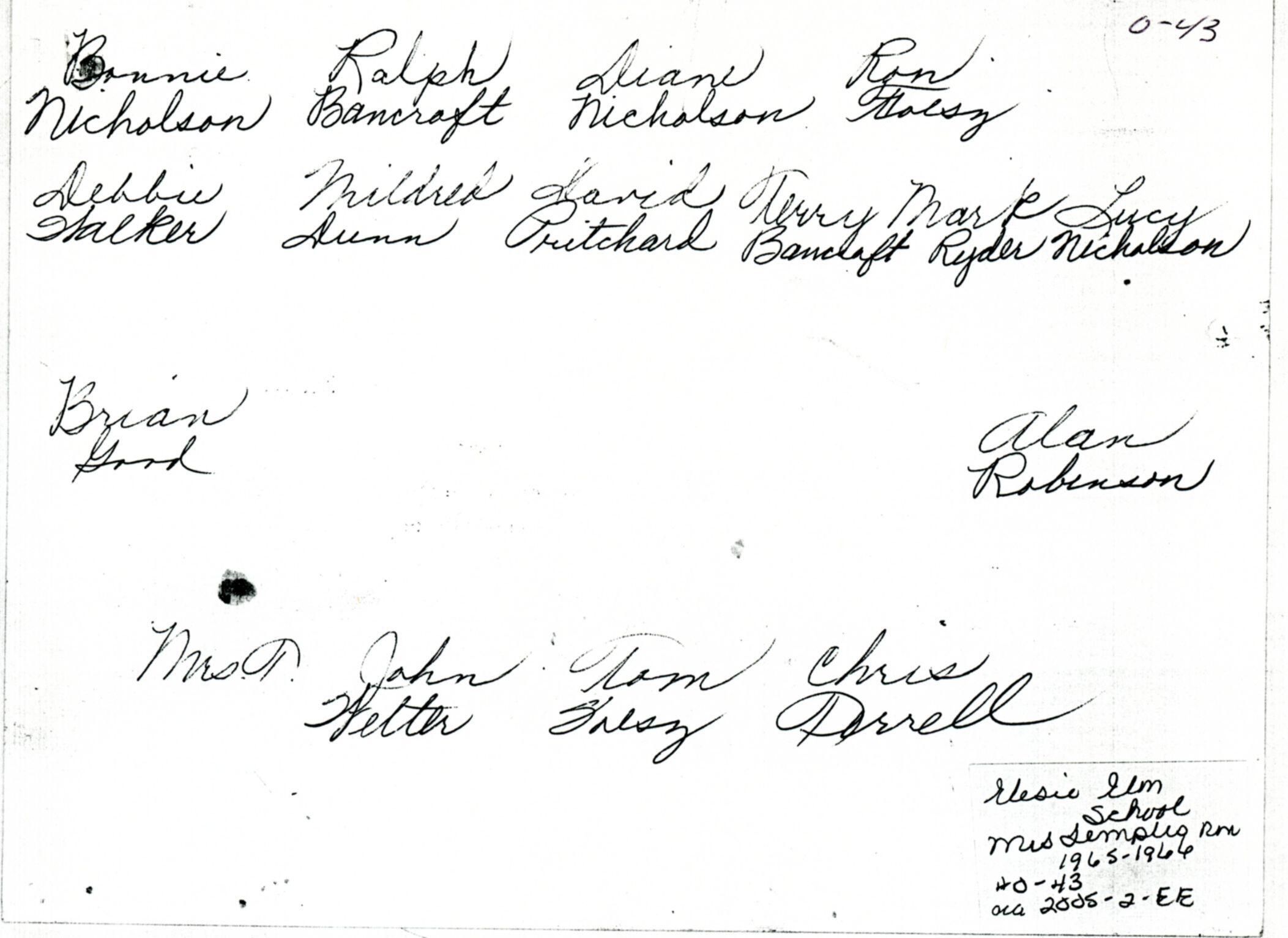 Elsie Elementary School, 1965-6. Jeanne Temple (teacher)