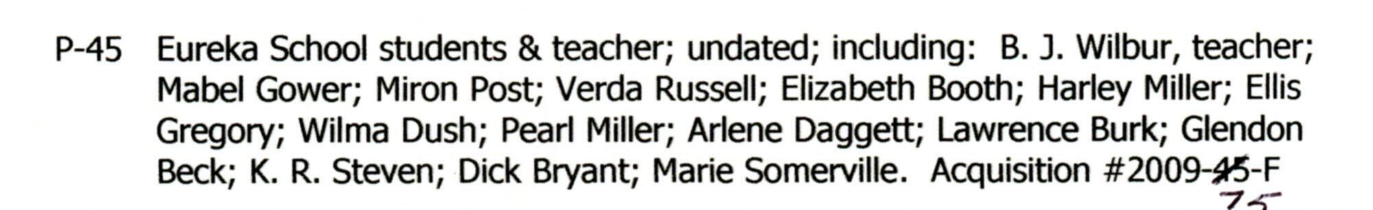 Eureka school, B. J. Wilbur (teacher). c1920.