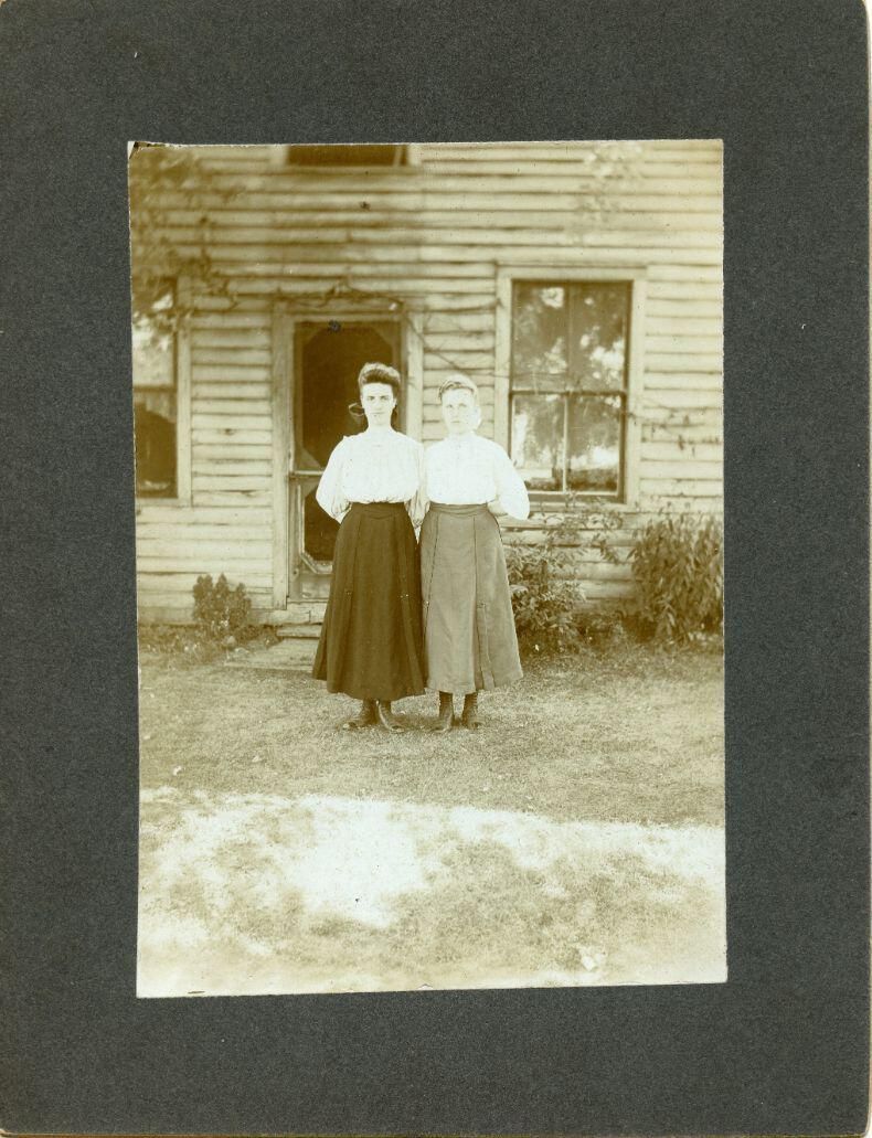 Unidentified people in front of Ferguson home on Nw corner of Washington and Scott streets