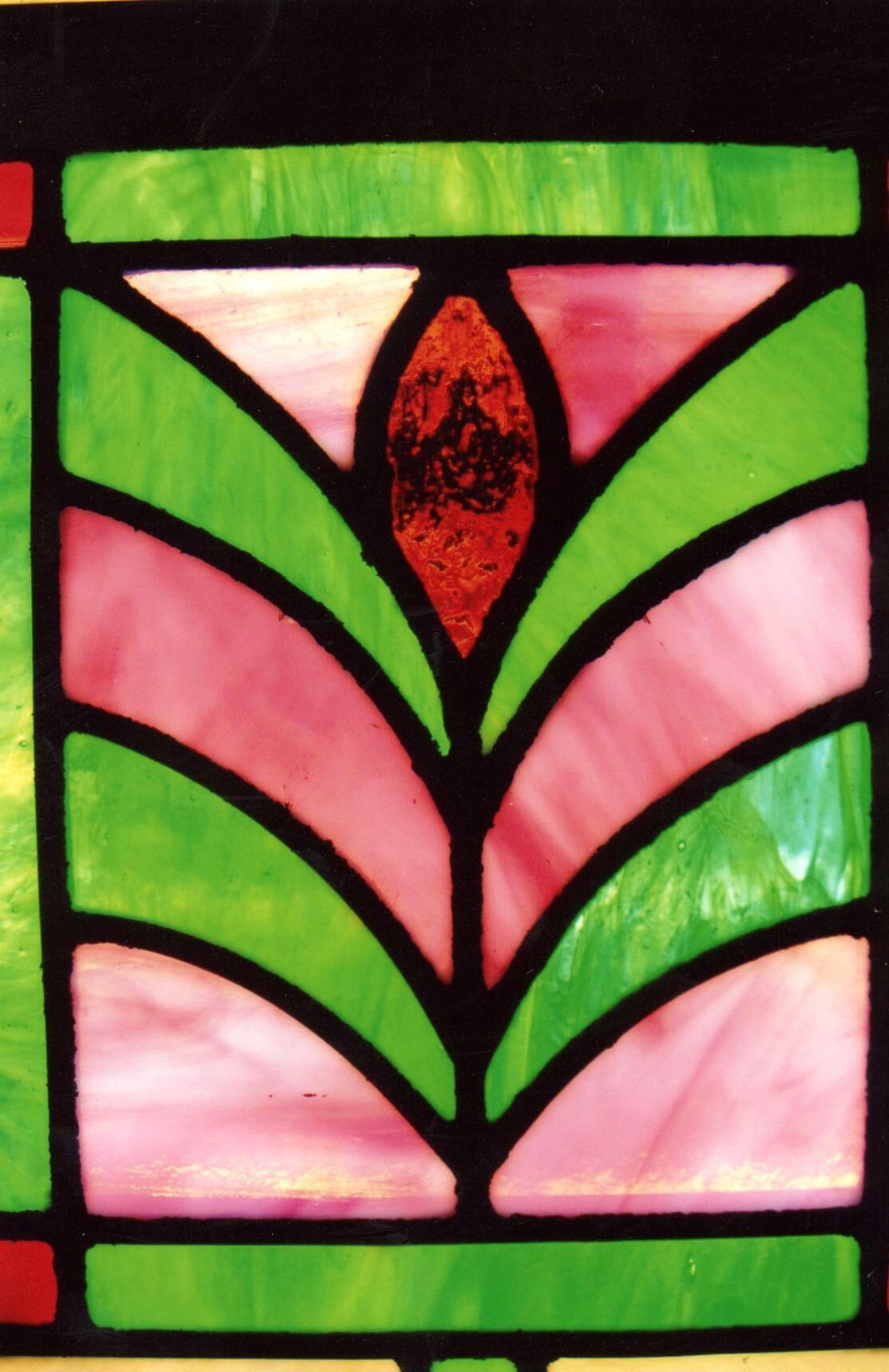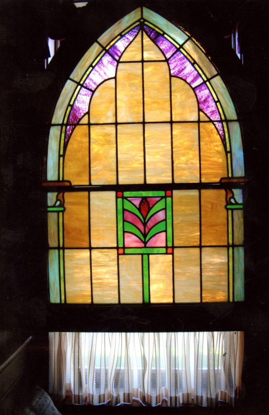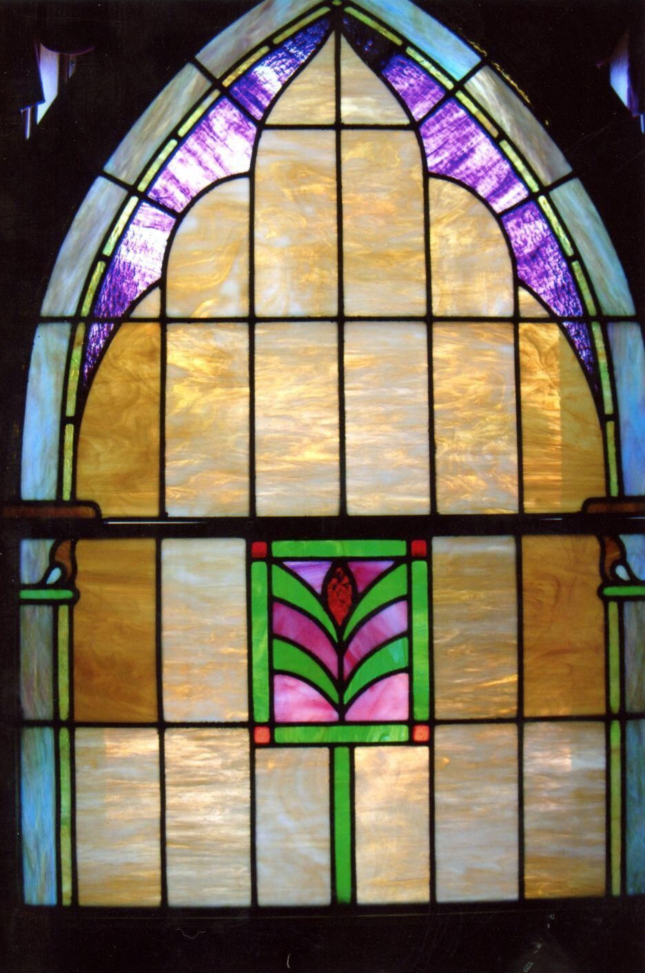 A stained glass window from First Baptist Church, St. Johns acquired by the Clinton County Historical Society Museum.