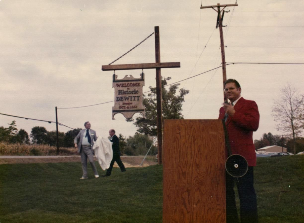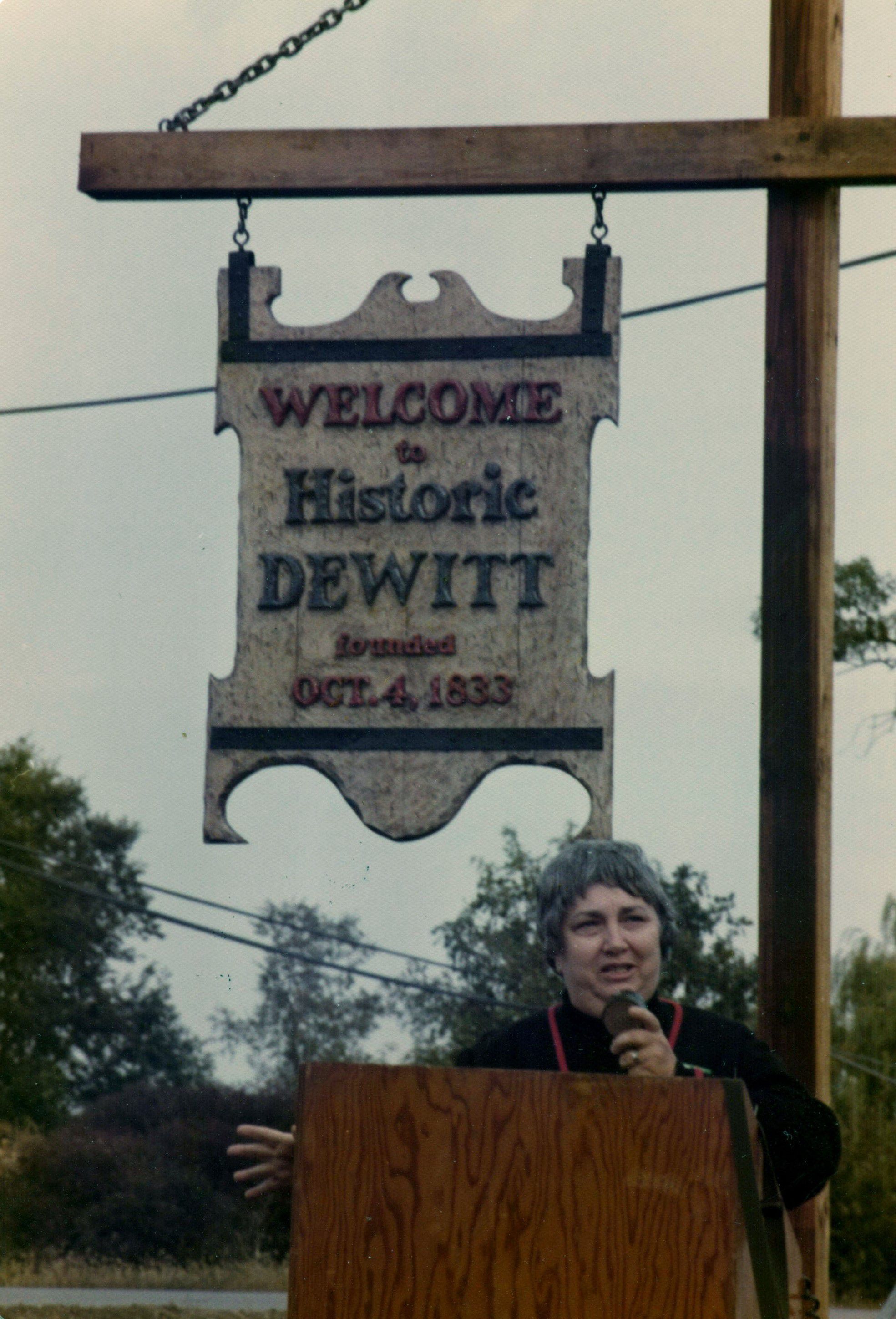 October 4, 1974, West Side Park (McGuire Park) DeWitt. Includes unveiling of the new sign. Featured is Faye Hanson.