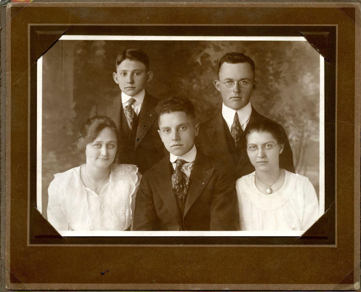 Fowler High School class of 1919. Bernice L. Brown, J. Norman Pohl, Raymond J. Halfmann, Ralph Gallagher, Vera G. Eisler.