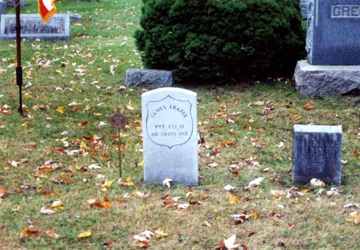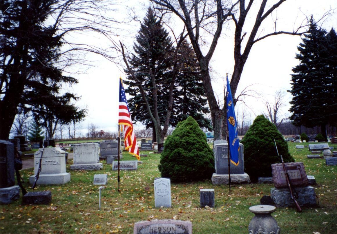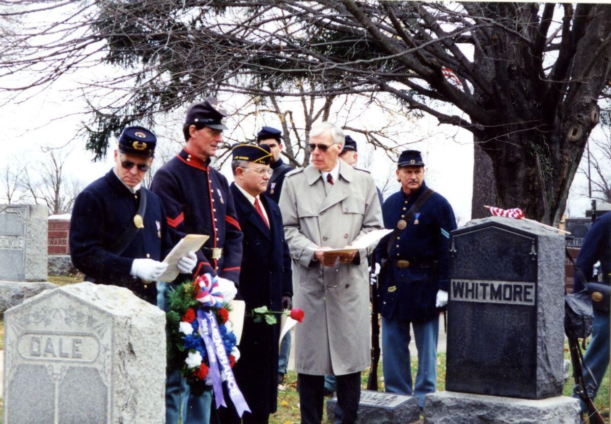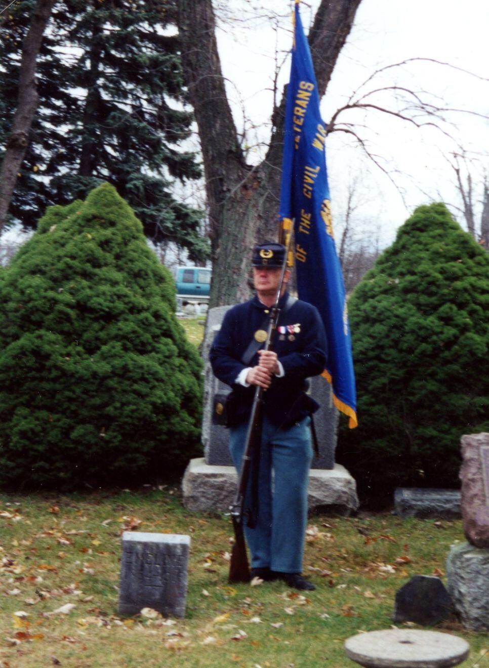 Sons of Union Veterans of the Civil War at James Frazee grave, North Eagle Cemetery, November 2000.