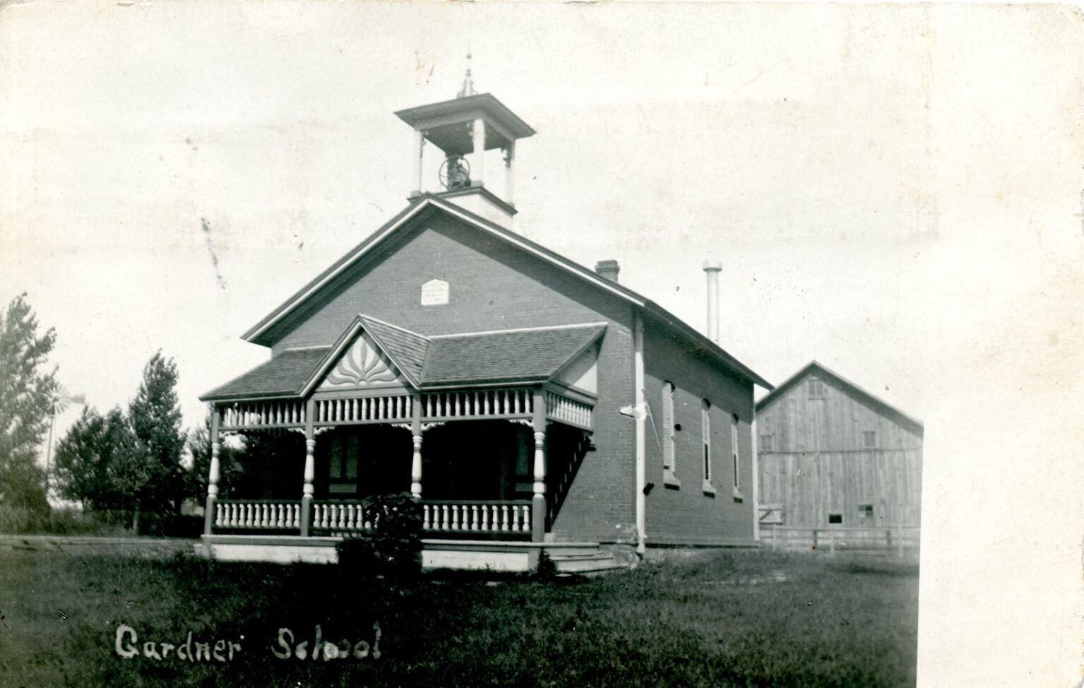 Postcard of Gardner (Kneeland) School from Helen & Lawrence Feightling. "The school house where we go to."