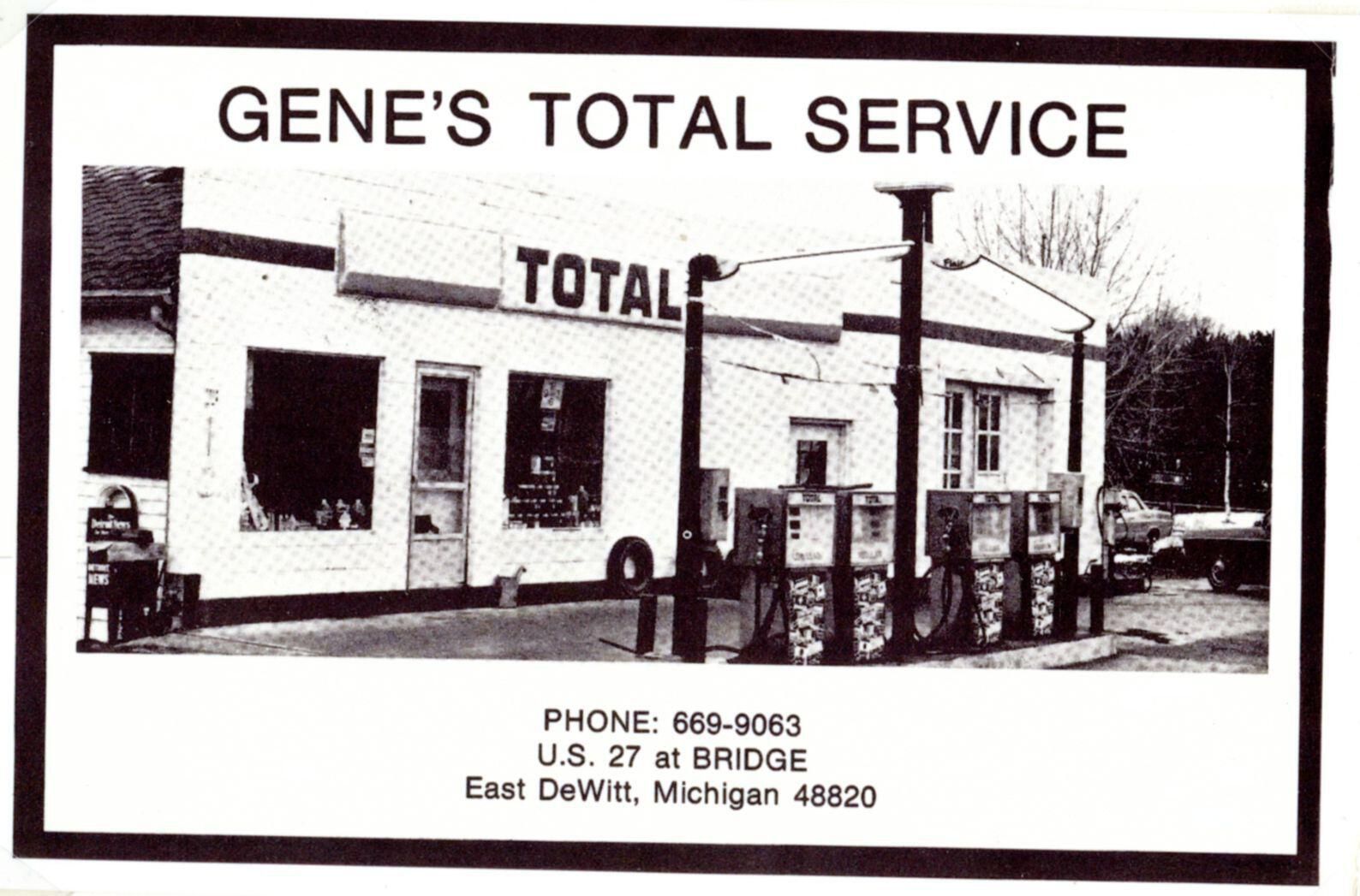 Gene's Total Service (previously a Leonard station) owned by Gene and Elsie Vettraino. Located at 11530 Old US-27, DeWitt, Michigan. S133 shows Gene and Elsie. S-134 is Gene.