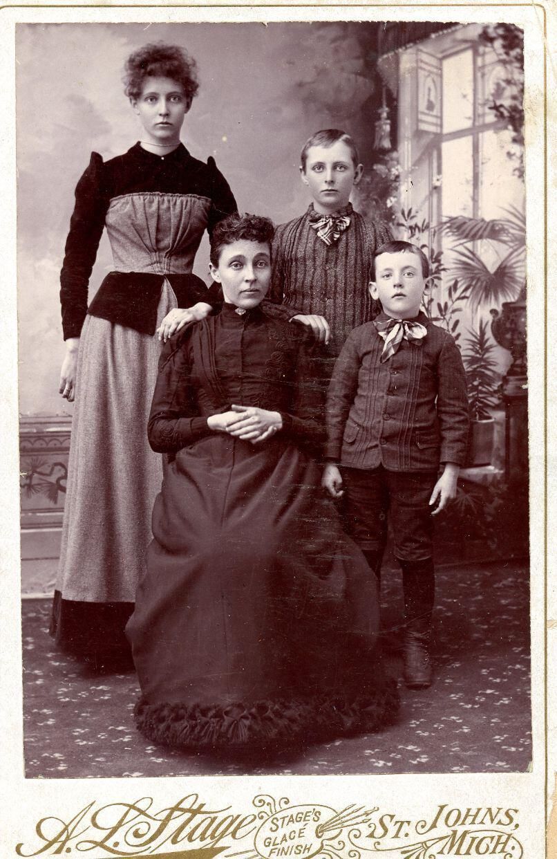 Sarah J. (Sutton) Georgia and her children Alice, Roma, and Guy, 1891.