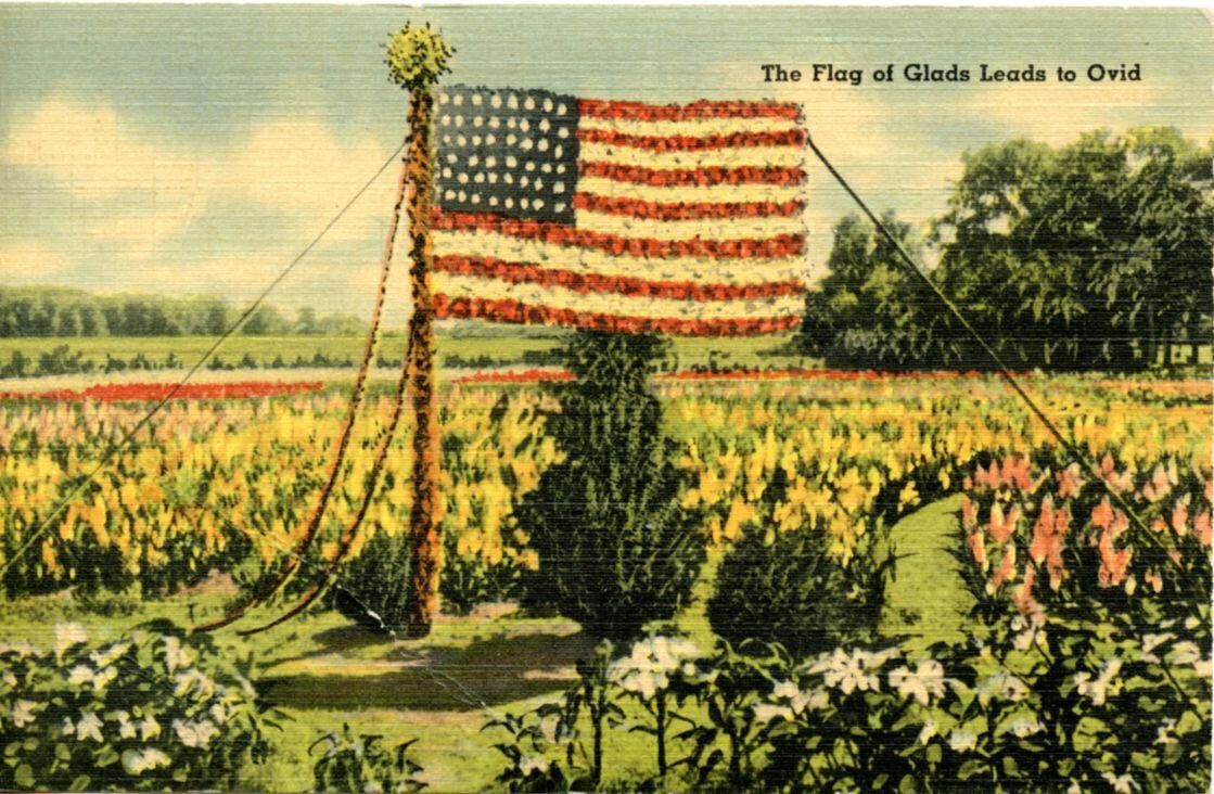 Postcard for 1941 Gladiola Festival in Ovid sponsored by Vaughn Seed Co. (3 copies)