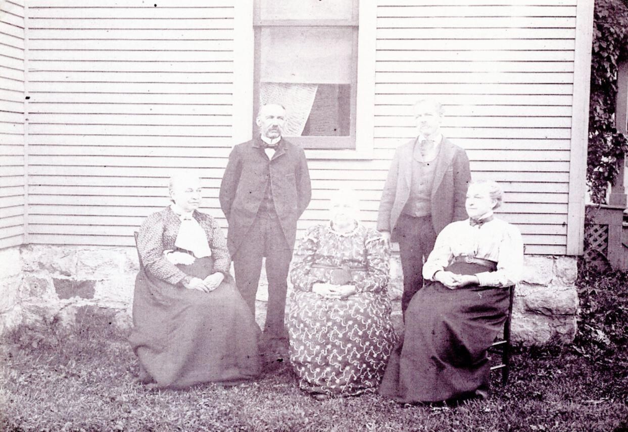 Label says Gooch family. There were three Gooch sisters: Betsey (married Seth Marvin and died in 1860 so isn't pictured here). Mary (married Randolph Strickland), and Olive (married Stephen Hill). The man on the left appears to be Stephen Hill. The woman on the left appears to be Olive (Gooch) Hill. photocopy.