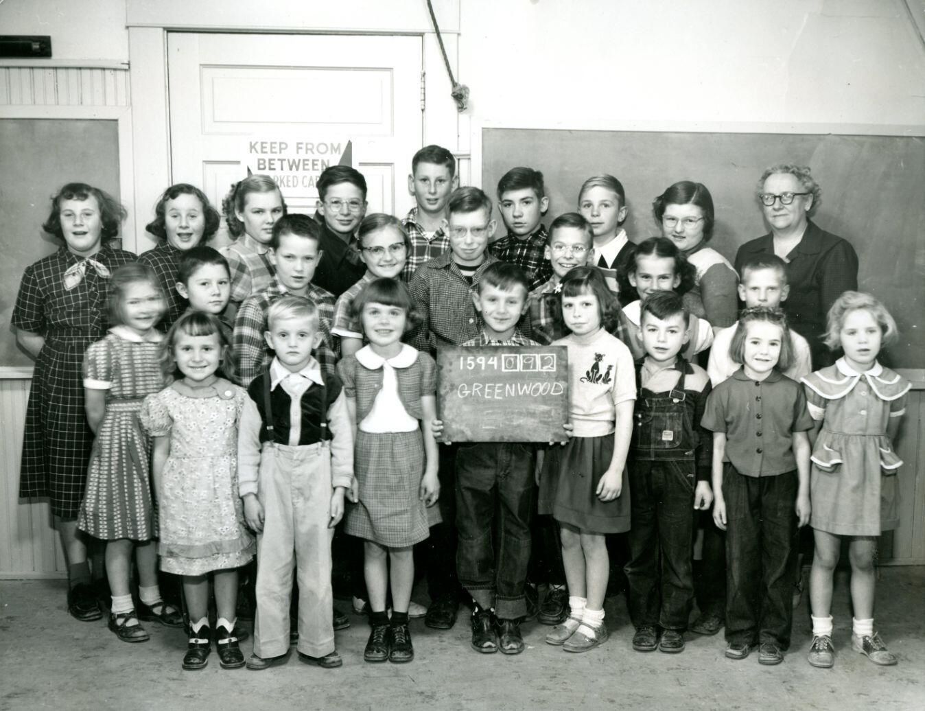 Greenwood School, Greenbush Township. 1954. Reva Ward (teacher). Students include member of the Redman, Wurn, Brown, Cox, Beebe, Benson, Livingston, Sykora, Ward, Swagart, and Ike families.