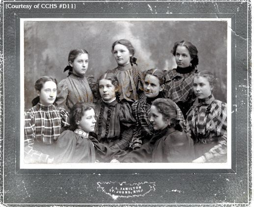 Middle row: Mable Woodard(?), Olive Munger, Esther McCabe, Maud Hart