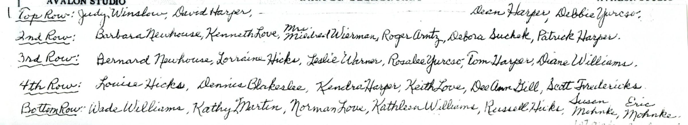 Harper School 1959-60. Mildred Wierman (teacher). Photocopy.