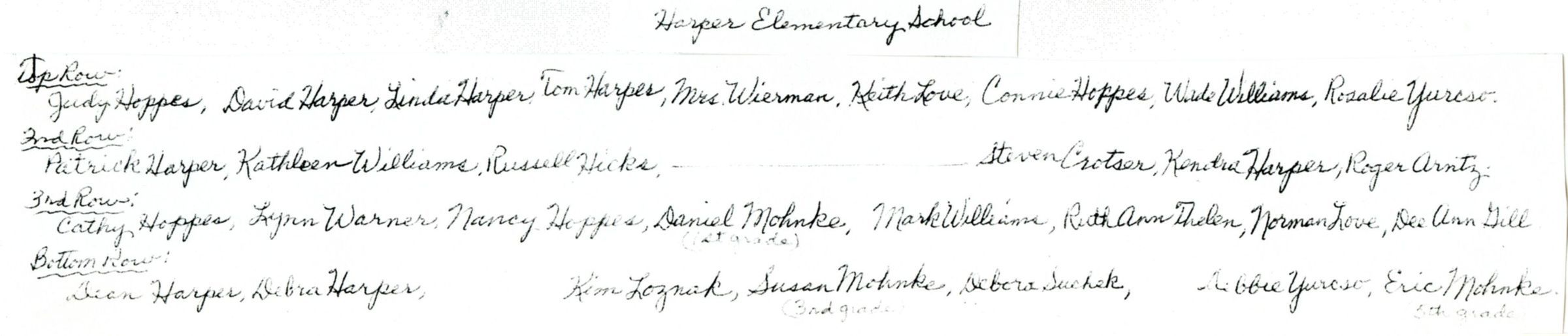Harper School, 1961-2. Mildred Wierman (teacher). photocopy