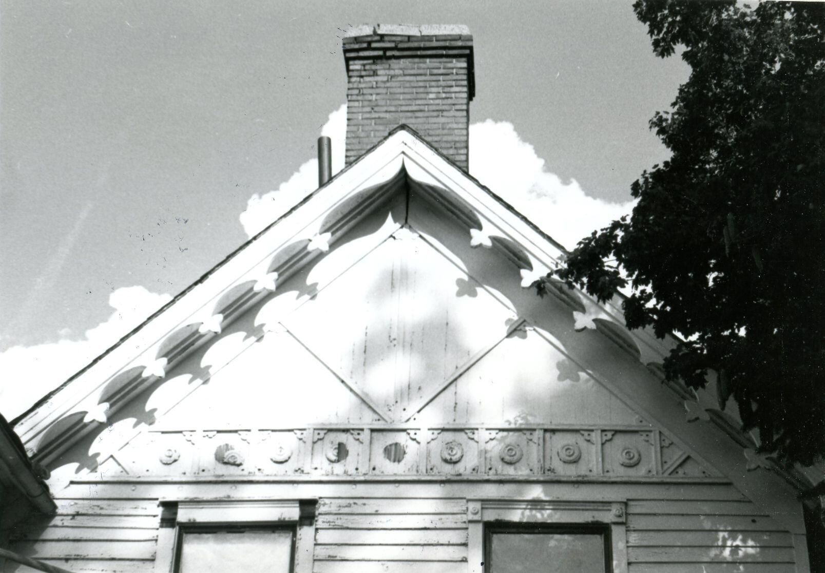 John C. Hicks house at Brush and Walkers Streets, St. Johns. Photo taken before 1978 remodeling. Featured cusp and tinfoil trim.