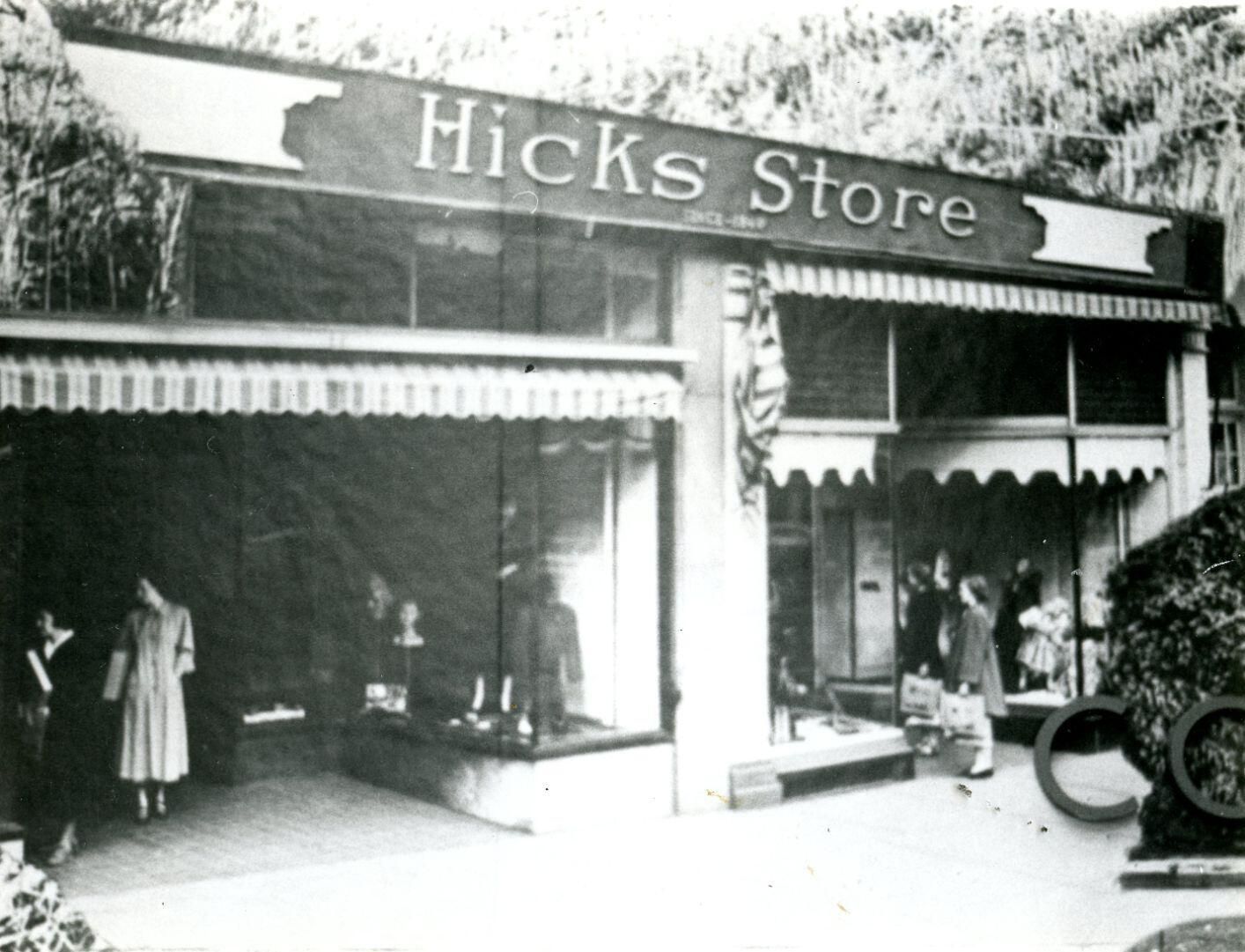Hicks store in 1950's from mural originally in National Bank building and later St. Johns Municipal Building. Copy of photo used in Clinton County History (1980) page 708. Another copy is PI212-131.