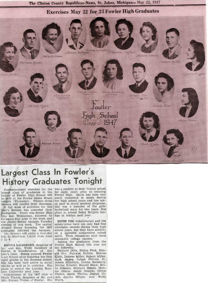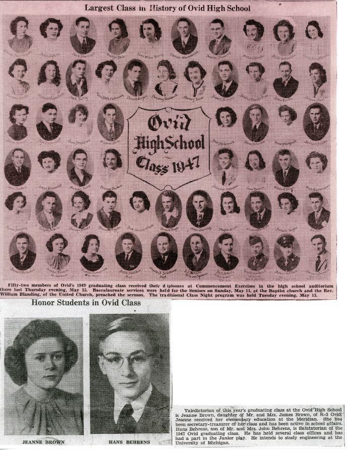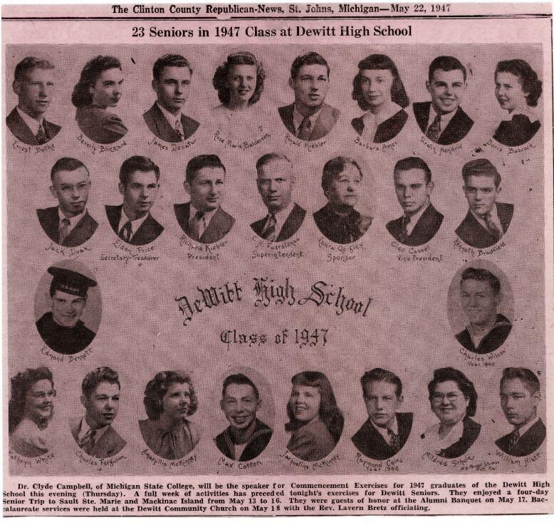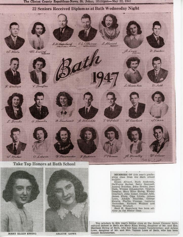 1947 Bath High School, DeWitt High School, Elsie High School, Essex Township High Schoool, Ovid High School, Westphalia High School.