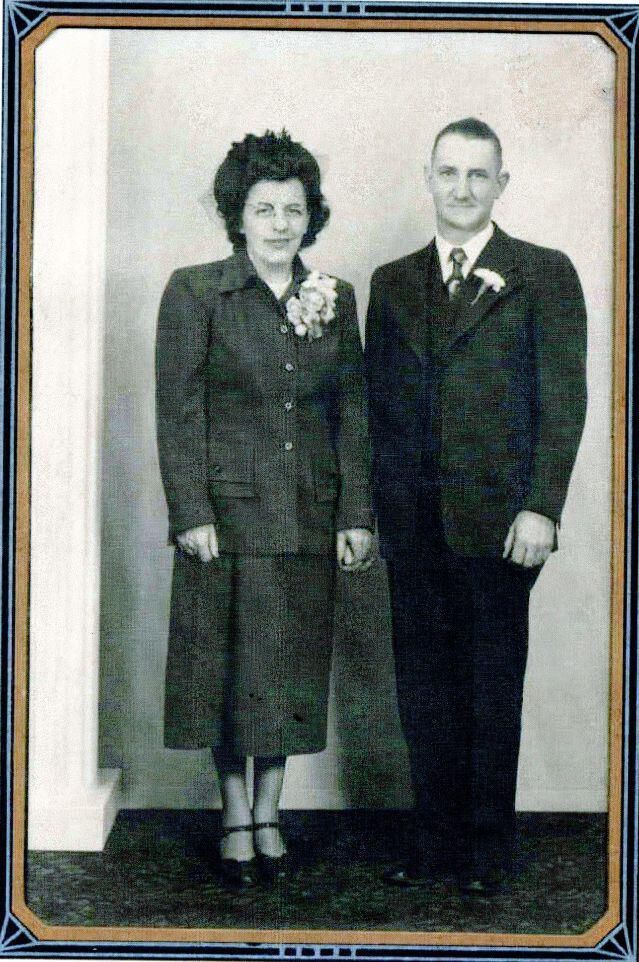 Harold and Eunice (Rodman) Hiner. Wedding photo on December 4, 1948. Harold was the son of Delbert C. Hiner. (photocopy)