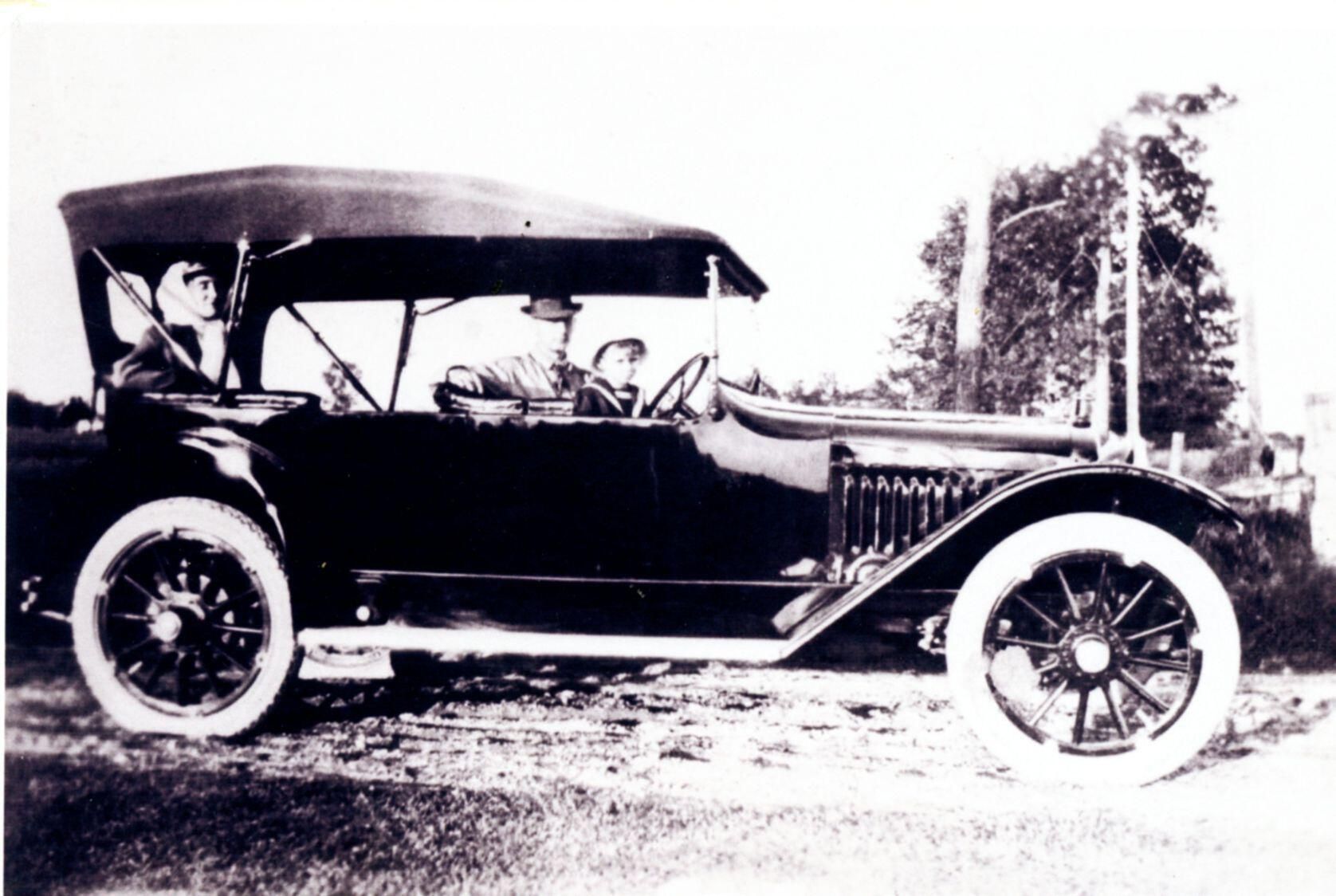 1915 Hupmobile with Orby Huggett, Clare Huggett, and Clara Belle (Barnhart) Huggett (in back). Their first car. copy.