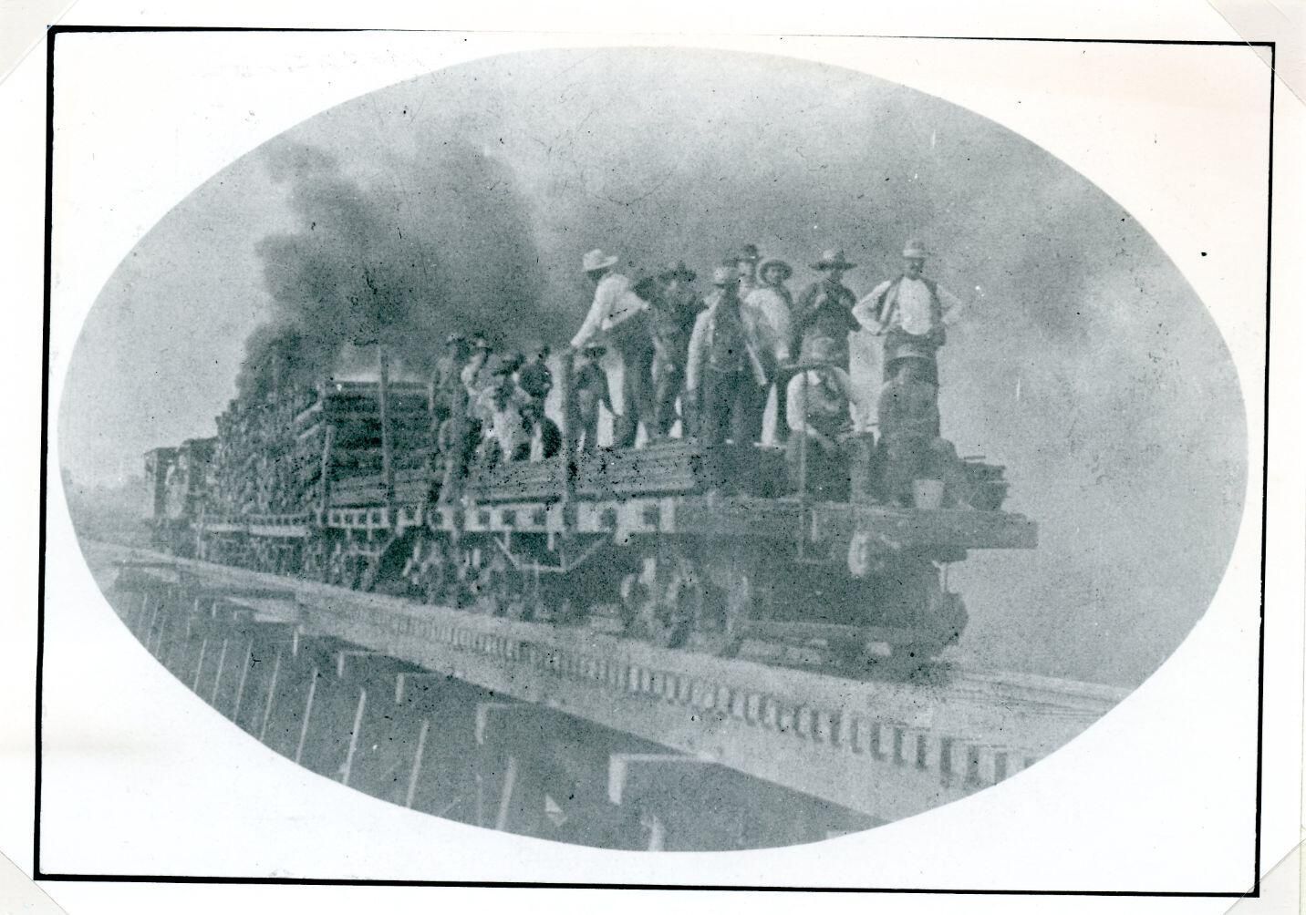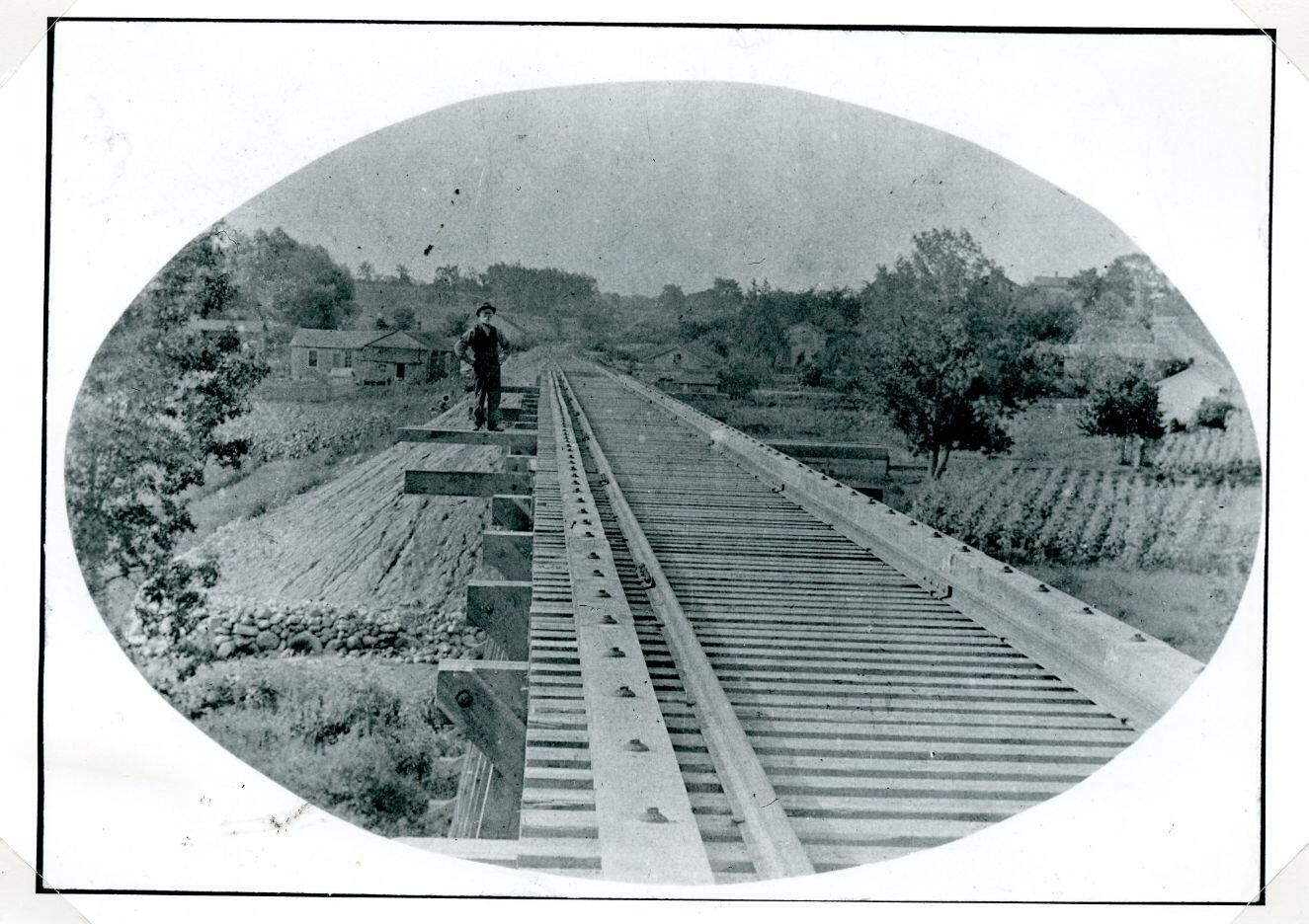 Interurban (Lansing, St. Johns, St. Louis RR) trestle at DeWitt on July 22, 1901. Copies of original photos by Dey VanVleet.