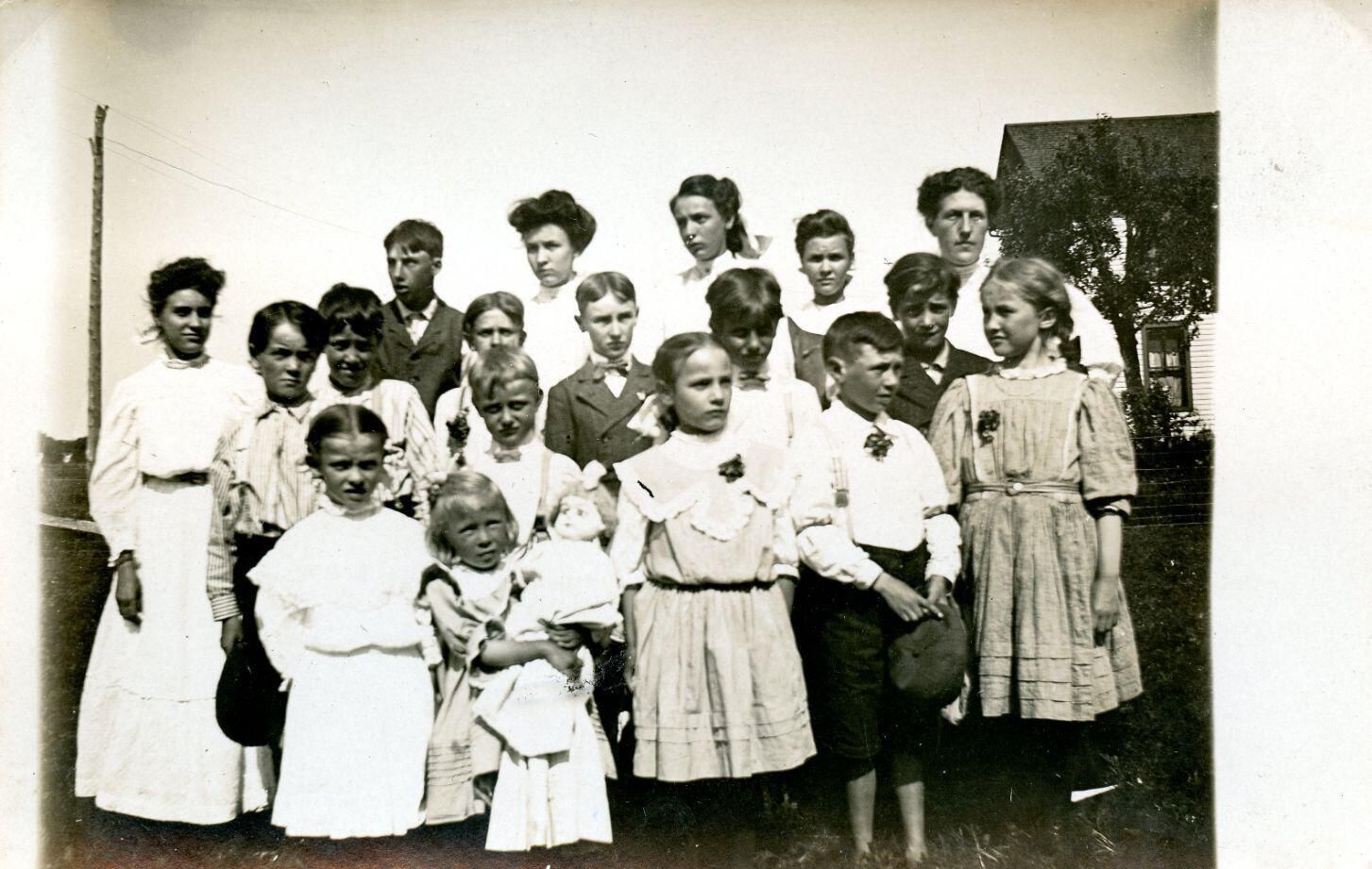 Island School, Lebanon Township, c1908. Nina (Webster) Reist, teacher.
