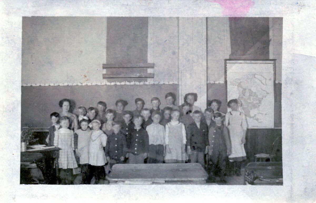 Postcard of Jason School c1910 with Matie, Clarence, and Vera Belle Vaughan
