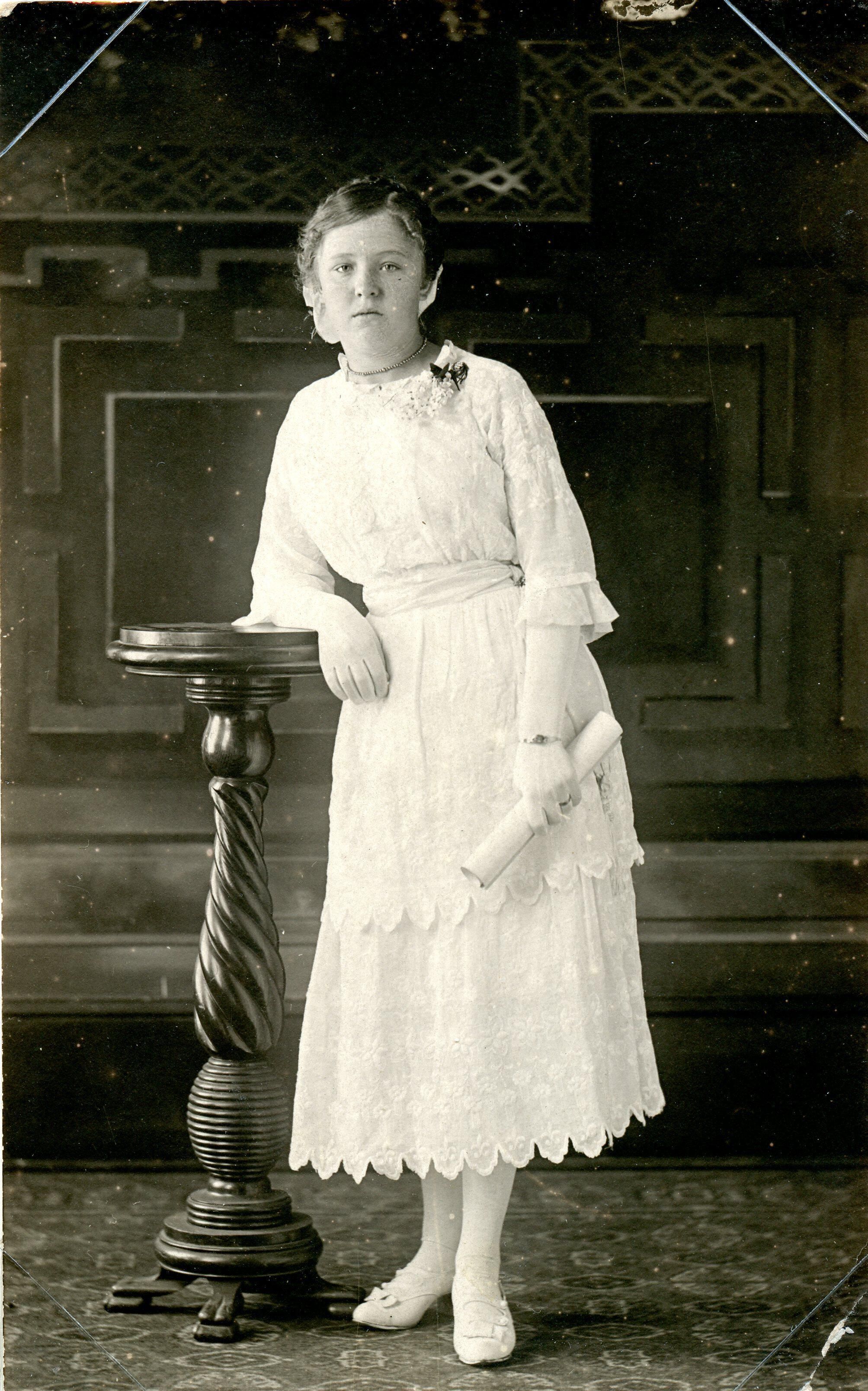 Lulu Marten Jastram daughter of Theodore and Mary Marten of Riley Twp. Probably 8th grade graduation.