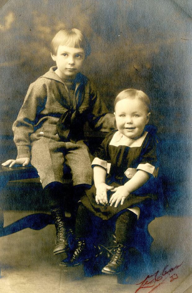 Kelley E. and Robert Juenker. Sons of Frank and Annie (Behrens) Juenker. Kelley was age 4 yrs 11 months and Bobby was 1 yr 2 months. Taken c1924.