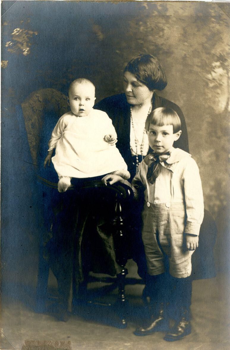 Annie (Behrens) Juenker, wife of Frank Juenker, and children Kelley and Robert (baby). c1923.