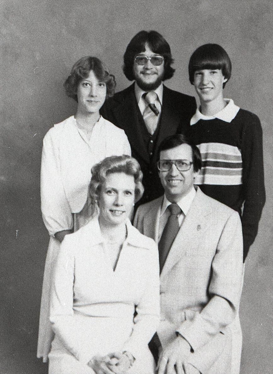 Lawrence Keck family. (back) Lisa, Gordon, Aric, (front) Shirley and Lawrence Keck. Scan of negative from 1980 History of Clinton County page 159.