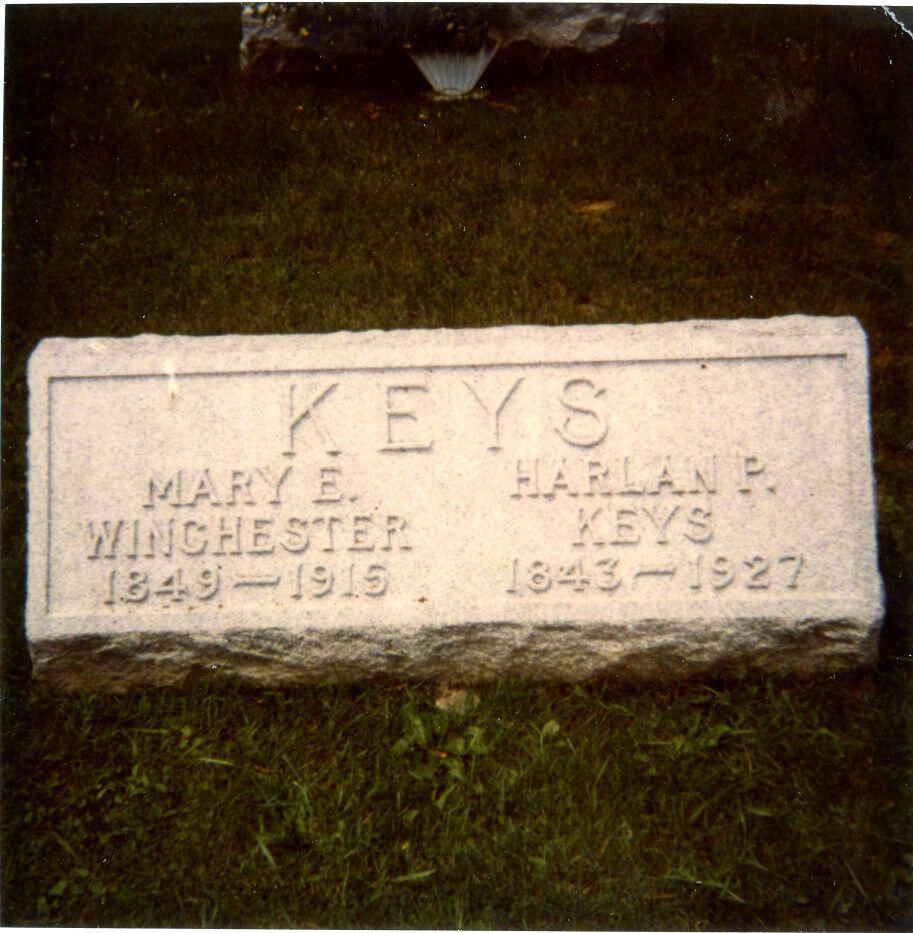 Mt. Rest Cemetery marker for Harlan P. and Mary E. (Winchester) Keys.