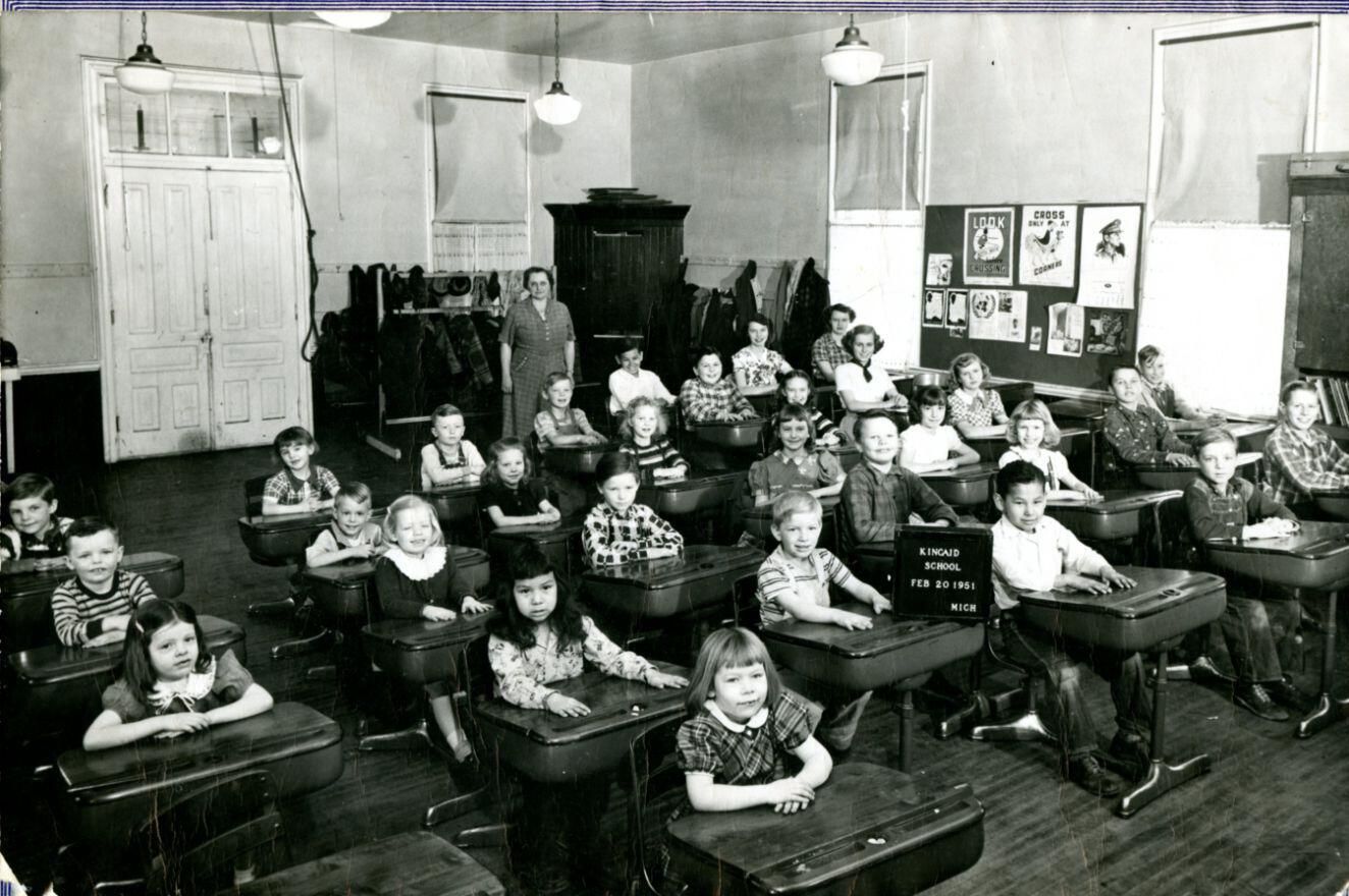 Kincaid School, Riley Township, February 1951. Ruth Bollinger (teacher).