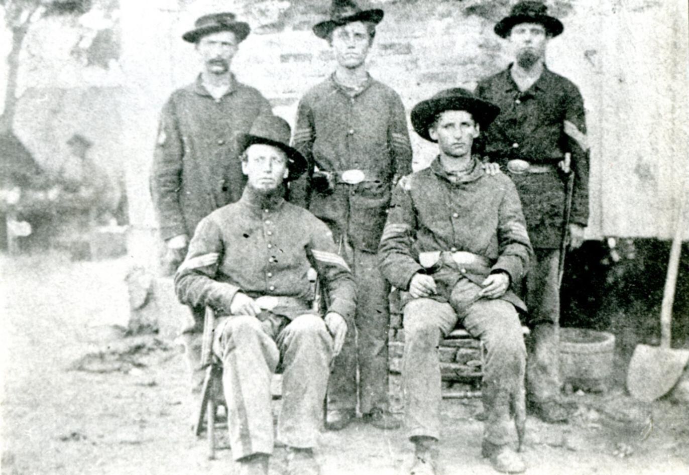 Group of soldiers with James A. Knickerbocker in center of back row. From 1980 History of Clinton County page 163.