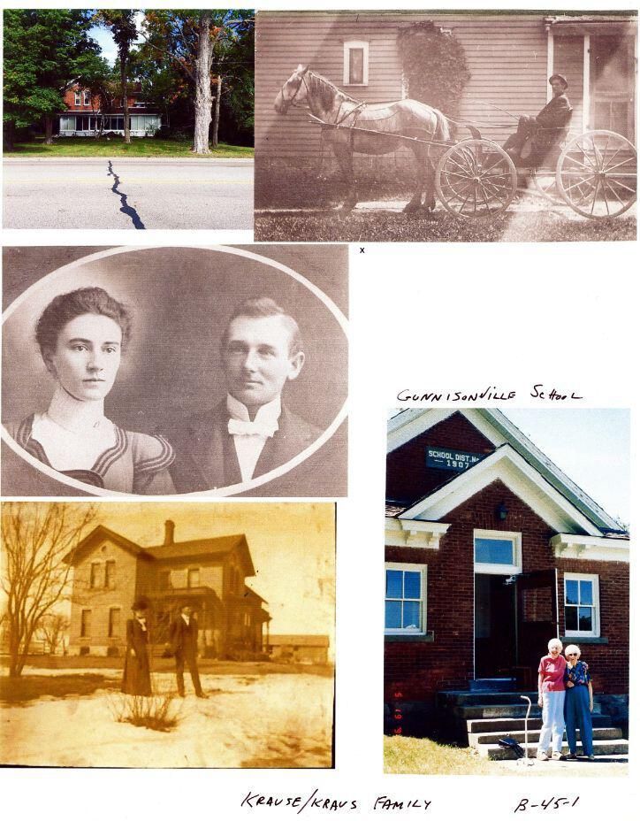 Krause/Kraus family collage. Includes Gunnisonville School.