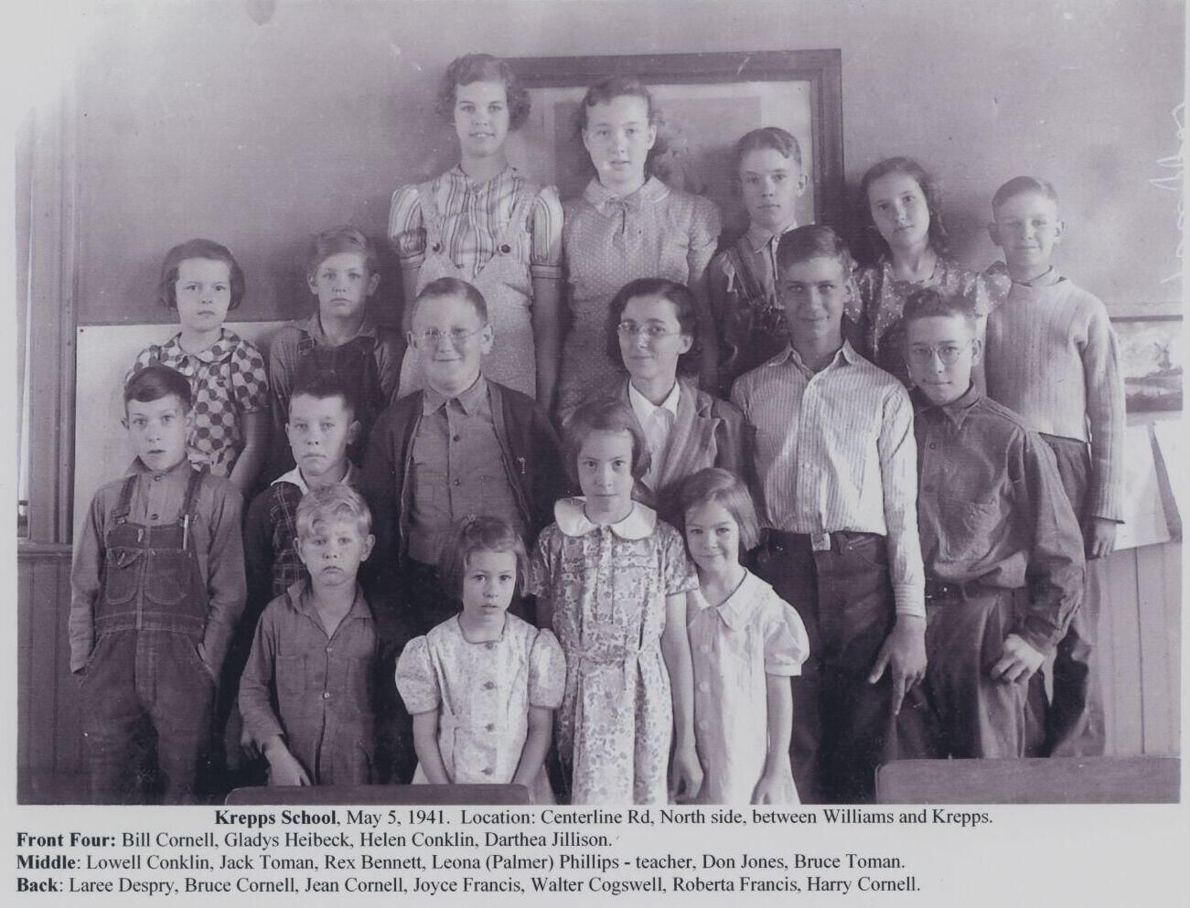 Krepps School 1927-8, 1930's, 1941.