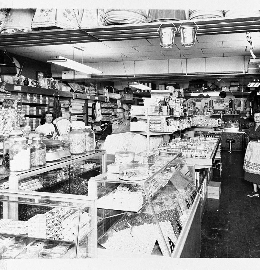 Lankford's Store with (LtoR) Matie Staub, Hamp Lankford, Janet Lankford Schulz (original missing - scan from negative)