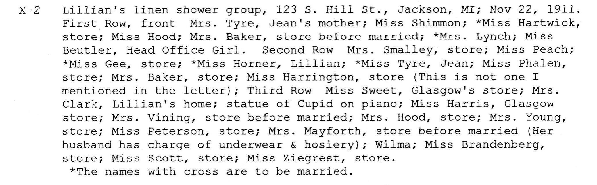 Lillian's linen shower group, 123 S. Hill St., Jackson, November 22, 1911.