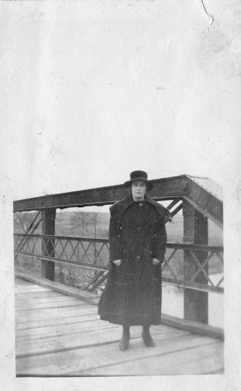 Bridge over Looking Glass River with (probably) Treadwell family member