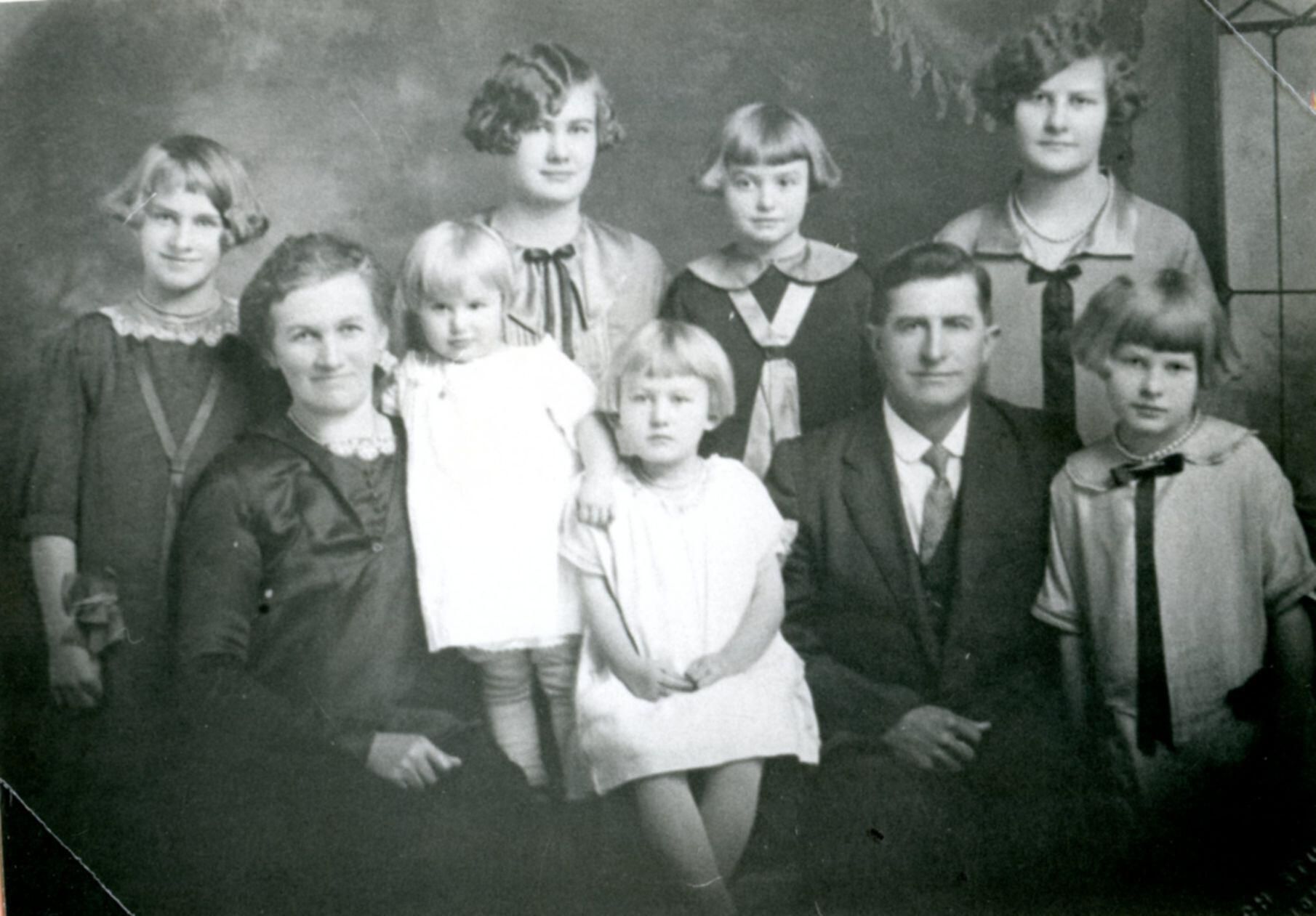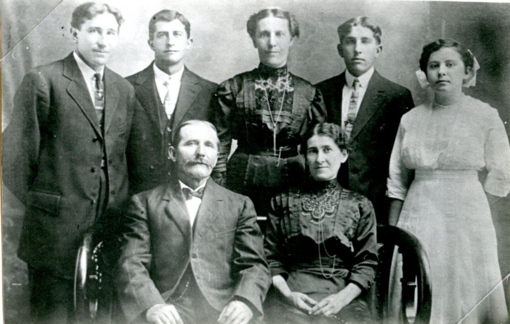 PI108-66 Edward Luecht family 1925 with (back) Esther, Dorothy, Florence, Bertha (front) Emma Verna, Edna, Edward, Edith. PI108-67 Johann Luecht family in 1912 with (back) William Edward, Wilhelmine, Louis, Marie, (front) Johann and Caroline. PI108-68 John and Caroline Luecht on their 15th anniversary with son William. PI108-69 not identified in index. PI108-70 John W. Luecht family in Los Angeles with (back) William, Kathy, (front) Robert, Mildred, John W., Richard. From 1980 History of Clinton County pages 176-179.
